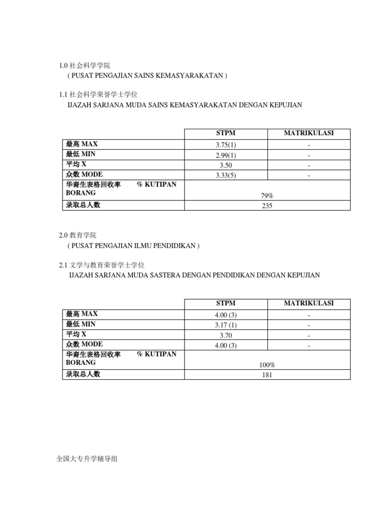 科系名称(巫) ijazah sarjana muda sastera (kepujian) ijazah sarjana muda komunikasi (kepujian) # ijazah sarjana muda sains kemasyarakatan (kepujian) ijazah muda seni muzik dengan kepujian (seni persembahan dan pedagogi).