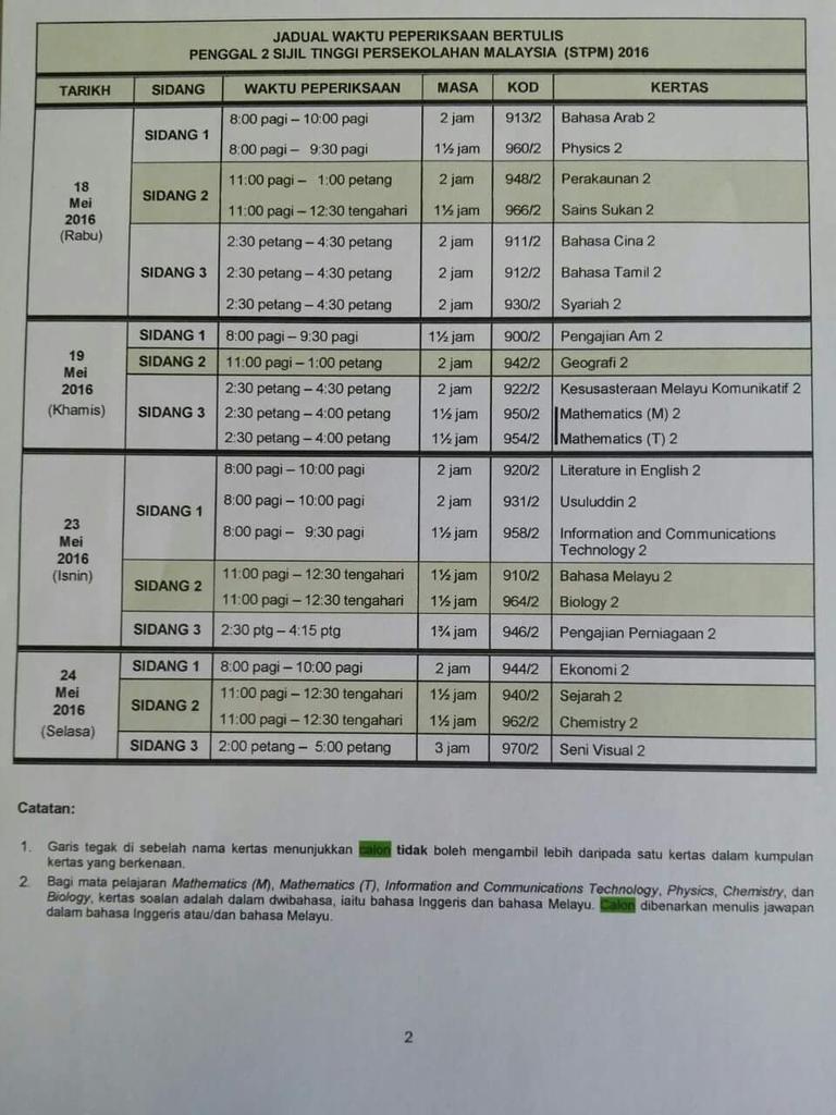 Jadual Stpm Penggal 2 2017 / Digunakan dalam peperiksaan stpm kecuali soalan tertentu tidak.